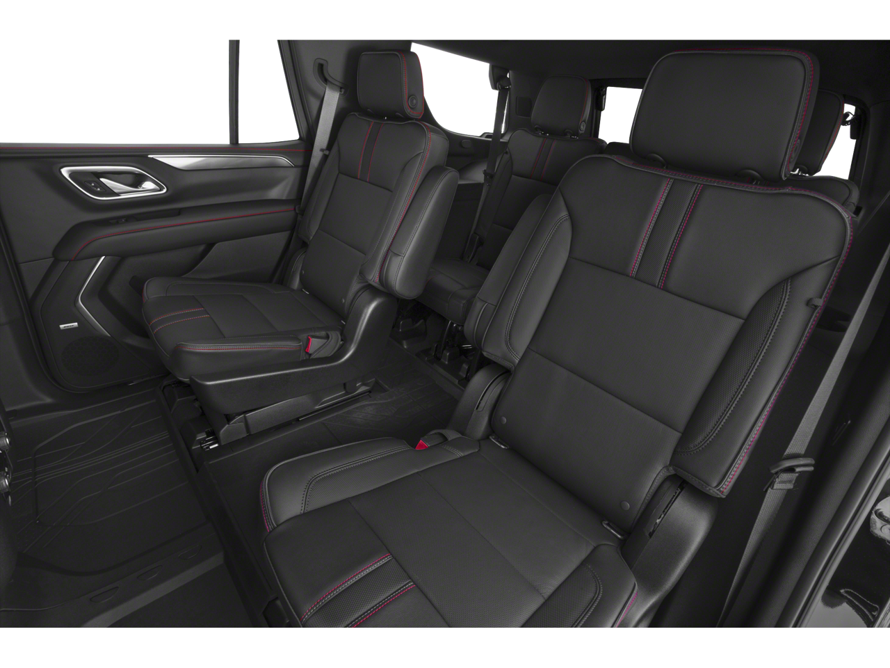 ** Alloy Wheels / Premium Wheels, ** Bluetooth®, Hands Free, ** Cruise Control, ** Keyless Entry, ** Premium Sound System / Premium Audio, ** Satellite Radio, ** Steering Wheel Controls, 4WD, Jet Black/Victory Red Leather, 10-Way Power Driver & Passenger Seat Adjusters, 1st & 2nd Row Color-Keyed Carpeted Floor Mats, 2 USB Data Ports, 3.23 Rear Axle Ratio, 3rd row seats: split-bench, 4-Wheel Disc Brakes, 9 Speakers, ABS brakes, Air Conditioning, Alloy wheels, AM/FM radio: SiriusXM with 360L, Apple CarPlay/Android Auto, Auto High-beam Headlights, Auto-Dimming Inside Rear-View Mirror, Auto-dimming Rear-View mirror, Automatic temperature control, Bose 9-Speaker Stereo Audio System Feature, Brake assist, Bright Front & Rear Door Sill Plates, Bumpers: body-color, Color-Keyed Carpeting Floor Covering, Compass, Delay-off headlights, Driver & Front Outboard Passenger Airbags, Driver door bin, Driver vanity mirror, Dual front impact airbags, Dual front side impact airbags, Electronic Stability Control, Emergency communication system: OnStar and Chevrolet connected services capable, Floor Console w/Storage Area, Four wheel independent suspension, Front anti-roll bar, Front Bucket Seats, Front Center Armrest, Front dual zone A/C, Front High-Back Reclining Bucket Seats, Front reading lights, Fully automatic headlights, Garage door transmitter, Hands-Free Rear Power Programmable Liftgate, HD Radio, Heated door mirrors, Heated Driver & Front Passenger Seats, Heated front seats, Illuminated entry, Infotainment Display, Leather steering wheel, Leather-Wrapped Steering Wheel, LED Daytime Running Lamps, License Plate Front Mounting Package, Low tire pressure warning, Memory seat, Memory Settings for Driver, Not Equipped w/Automatic Stop/Start, Not Equipped w/Steering Column Lock, Not Equipped w/Wireless Charging, Occupant sensing airbag, Outside temperature display, Overhead airbag, Overhead console, Panic alarm, Passenger door bin, Passenger vanity mirror, Perforated Leather Seat Trim, Power door mirrors, Power driver seat, Power Liftgate, Power passenger seat, Power steering, Power windows, Preferred Equipment Group 1SP, Premium audio system: Chevrolet Infotainment 3, Premium Smooth Ride Suspension, Radio: Chevrolet Infotainment 3 Plus System, Rain sensing wipers, Rear air conditioning, Rear anti-roll bar, Rear reading lights, Rear seat center armrest, Rear window defroster, Rear window wiper, Remote keyless entry, Remote Start, Roof rack: rails only, Security system, Set of 4 Wheel Locks (LPO), SiriusXM Radio w/360L, Speed control, Speed-sensing steering, Split folding rear seat, Spoiler, Steering wheel mounted audio controls, Tachometer, Telescoping steering wheel, Tilt steering wheel, Traction control, Trip computer, Universal Home Remote, Variably intermittent wipers, Voltmeter, Wheels: 22 x 9 Bright Machined, 4WD, Jet Black/Victory Red Leather.